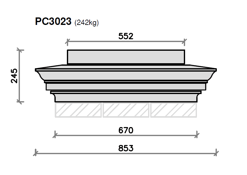 This pier cap design is from our standard range and has moulding leading up into an apex top, with a flat spot to accommodate the pier block and a separate fluted flush base unit to continue the flow of the moulding and sit flush with your pier. This is supplied in three pieces that can be fixed together if necessary. It is made to suit three brick piers and will protect them from the elements and finish off brick, stone or rendered piers perfectly.